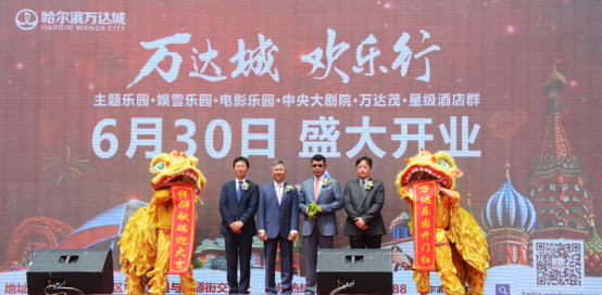 6月30日,哈尔滨万达文化旅游城(简称哈尔滨万达城)盛大开业,哈尔滨万达城是万达集团开业的第6个重大文化旅游项目,也是东北地区唯一的万达城。哈尔滨万达城是中国东北投资最大、水准最高的文化旅游项目,四季全天候冰雪娱乐、鲜明的哈尔滨历史文化特色、高水平驻场演艺,打造辐射东北亚的世界级旅游目的地。黑龙江省政协主席杜宇新、哈尔滨市委书记王兆力、市长宋希斌、万达集团董事长王健林等出席开业仪式。与此同时,令人期待的哈尔滨万达乐园也终于正式开门迎客!百余位嘉宾、媒体及成千上万的游客作为开业首批体验者,亲临哈尔滨万达乐园开启一场欢乐之旅。
