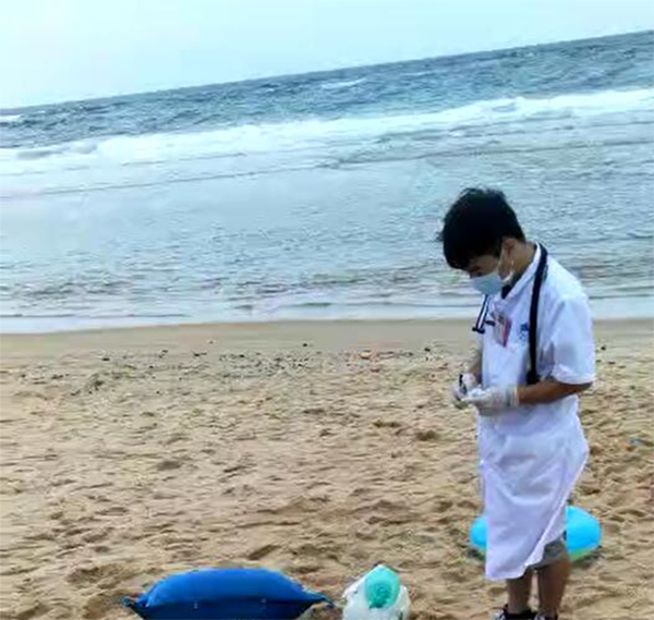 从网上流传的现场救援视频可以看到,疑似有数名年轻人身着泳衣躺在沙滩上,附近有不少身着救生衣的救生员和武警官兵,医务人员同时为多人在实施心肺复苏等抢救措施。