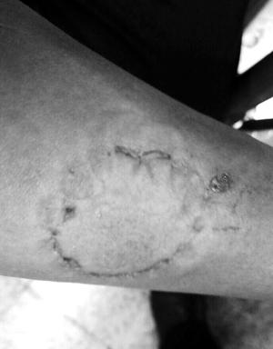 昨天,网曝地铁5号线上一便衣警察在抓色狼时被咬伤。北京晨报记者从照片中看到,一名便衣民警的手臂上有一个圆形、深深的牙印,局部还有血迹。此事引发了网友对色狼的声讨。