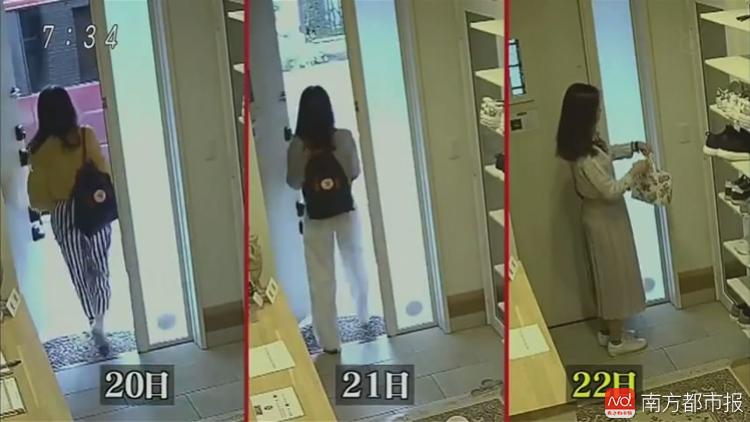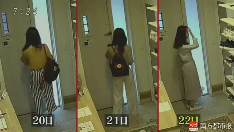 7月22日,危秋洁离开札幌的Ocho旅馆。从监控视频中可以看到,她在20、21日两天出门时都是上衣下裤,背着一个休闲版的黑色双肩包。
