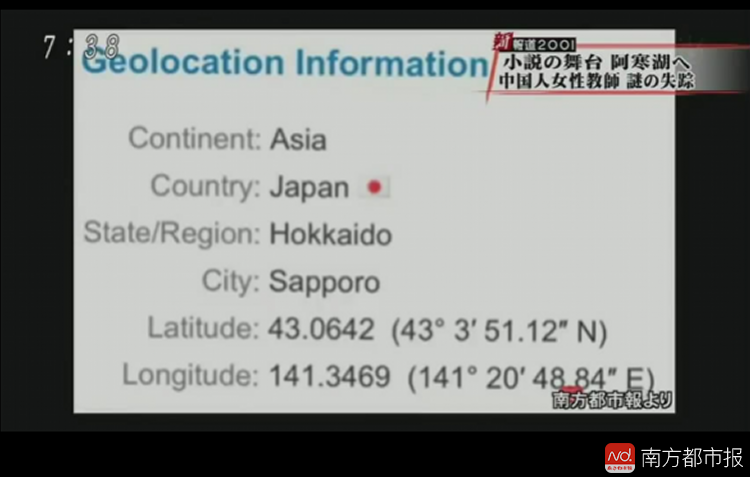 8月13日,日本媒体又曝光了多段危秋洁失联前的监控视频,显示其随身携带的iPad离奇消失,同时援引南方都市报的报道进行了IP地址定位模拟。
