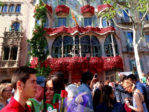 资料图片:在西班牙加泰罗尼亚地区首府巴塞罗那,著名旅游景点“巴特罗之家”“穿”上“玫瑰盛装”。