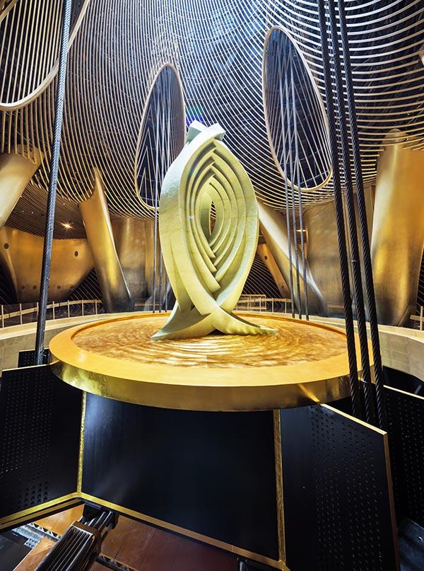 世界上首个电涡流摆式调谐质量阻尼器连同上部雕塑 上海中心供图