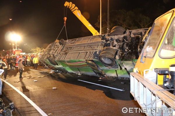 今年2月,台湾蝶恋花旅行社游览车翻车,致使包含司机在内的33人死亡。 图片来源:台湾《东森新闻云》