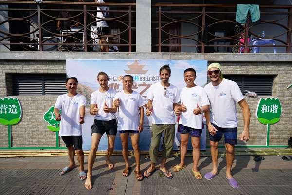 Flying Frenchies团队一行来了3人,Rodolphe Cassan(鲁道夫•卡桑),Julien Millot(朱利安•米洛),Freddy Montigny (弗雷迪•蒙迪尼),他们都是户外运动爱好者,喜欢跳伞、冒险以及尝试新鲜的东西。此次来到贵州体验独竹漂,令他们兴奋不已。