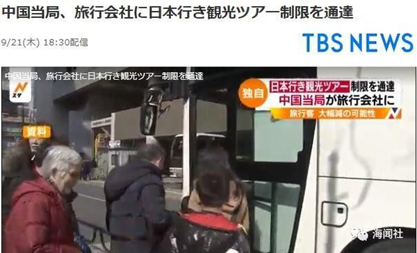 9月21日傍晚,日本TBS电视台发布了一条新闻,称中国有关部门发出通知,要求旅行社限制赴日团体游客的数量。继韩国之后,难道赴日旅游也要受到限制了?请看记者的调查。
