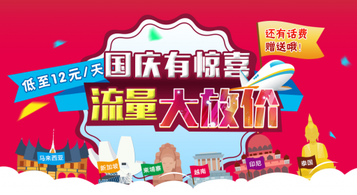 国庆期间,联通境外流量包,各国日均价都降至12元/天左右,