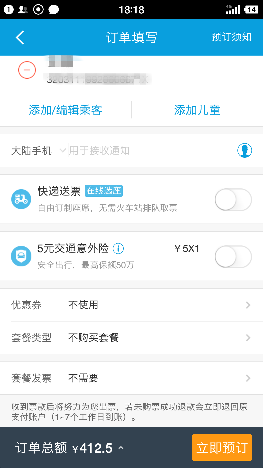 (若手动取消购买套餐,则价格为车票原价。图片来源:携程客户端。)
