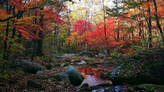 进入秋季,天桥沟就是枫叶的天堂,万山红遍,层林尽染。放眼望去,漫山由绿变黄、由黄变红的枫叶在这里比比皆是。红灿灿的枫叶之中,加之点点翠松,片片青泉,五彩缤纷,色彩斑斓,煞是好看,是很多人秋季赏枫的必选之地。