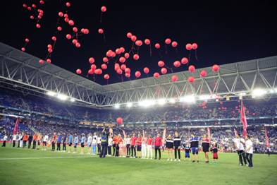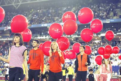 本次时装秀视觉设计以中国红作为主色调,配以中国传统祥云图案,将鲜明的中国特色自然地融合于秀场,向世界展示出中国品牌的非凡魅力!走秀最后环节,全场模特一同放飞手中的红色气球,“中国红”布满了整个赛场,中国红“承包”绿茵球场,这场别出心裁的大秀精彩绝伦,收获了现场球迷的欢呼声掌声不断。