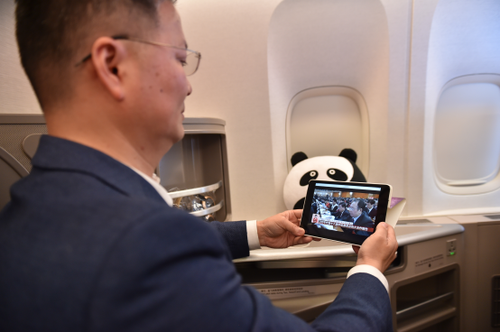“今天视频挺流畅的,总书记的声音很清晰。”作为一名经常出差的飞行达人,明山控股集团有限公司执行总裁杨伟山的话里难掩兴奋:“今天是个好日子,十九大开幕了,我们在空中聆听了总书记作报告。以前我从来没有体验过在飞机上看直播,感谢科技的力量,把最新的资讯传递到了世界的每个角落。”