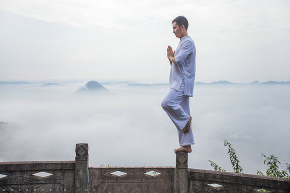 (屏岩洞府瑜伽晨练 摄/MoorWorld)