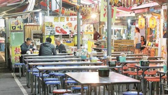 号称全台最大的高雄凯旋夜市,现只剩大约20摊,不少店家整排座位只有两三位客人。图片来自中国台湾网