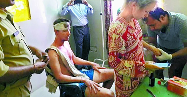 男游客头部多处受伤,女游客胳膊被打骨折,目前正在新德里一家医院进行治疗。 图片来自北京晚报