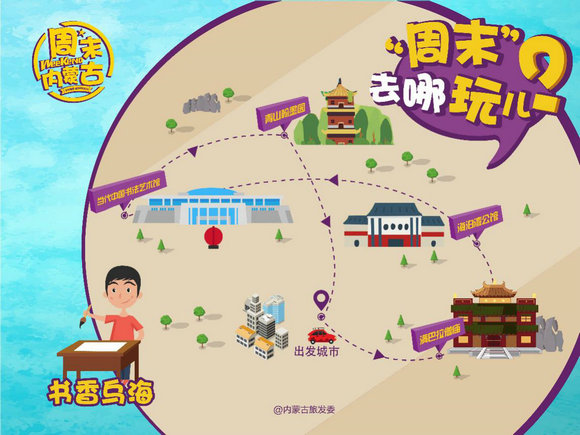 推荐线路:“周末内蒙古”出发城市——龙游湾湿地——汉森酒庄——华风酒店——阅遇书吧——乌海湖——兴泰开元名都酒店