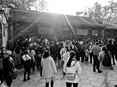 香山公园售票处排队买票的人群。本文图片 北京青年报