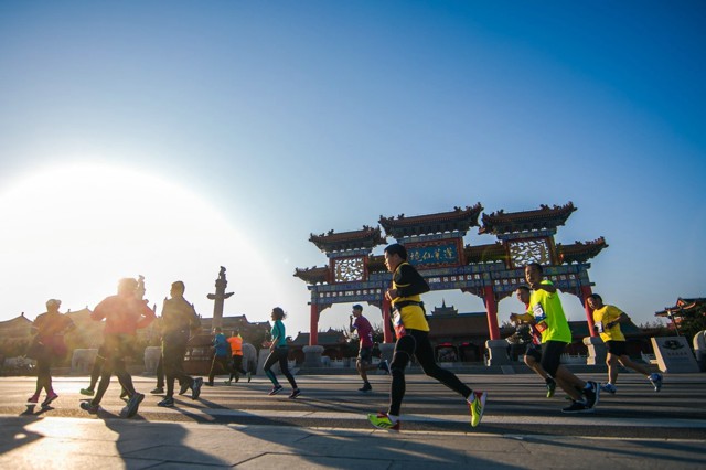 一名身着戚继光将军服装的跑者,引领着人群进入了著名的“蓬莱水城”,它的历史要追溯到宋代。起初是停靠战船的刀鱼寨,至明代则修筑了水城,负山控海,至今仍保留着水门、防浪堤、平浪台、敌台、炮台等海防建筑,是国内现存最完整的古代水军基地。著名的民族英雄戚继光曾在这里操练海军,抗击倭寇,练成赫赫有名的“戚家军”。
