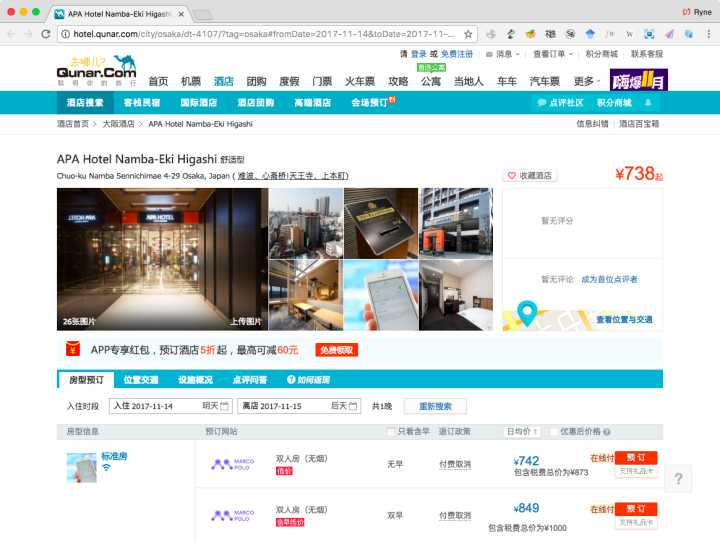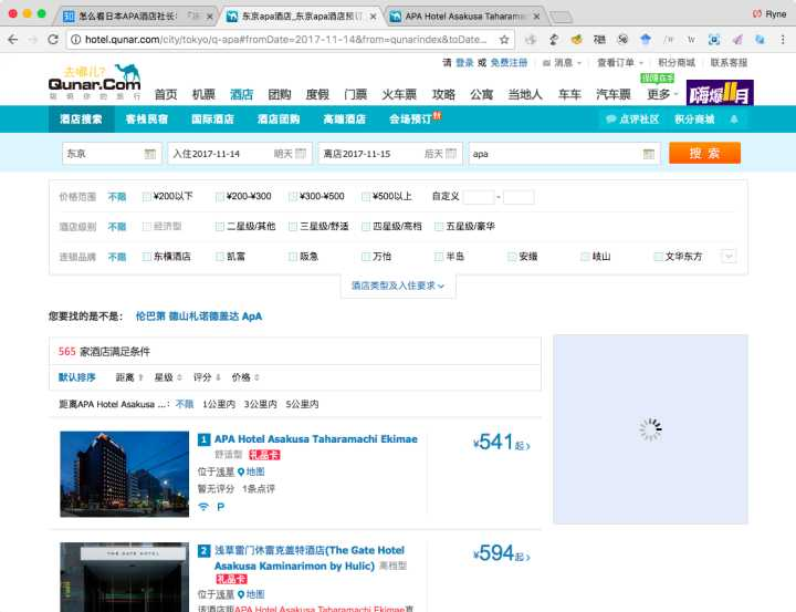 此前,知乎用户“王瑞扬”在“怎么看日本APA酒店‘绝不撤书,你们几个月后就会忘记’这一言论?”这一问题下做答,据王瑞扬11月12日的回答中所记载的,当他当日打开去哪儿网以“apa”为关键词进行搜索时,发现在东京和大阪的酒店搜索结果里都仍然显示有APA酒店。