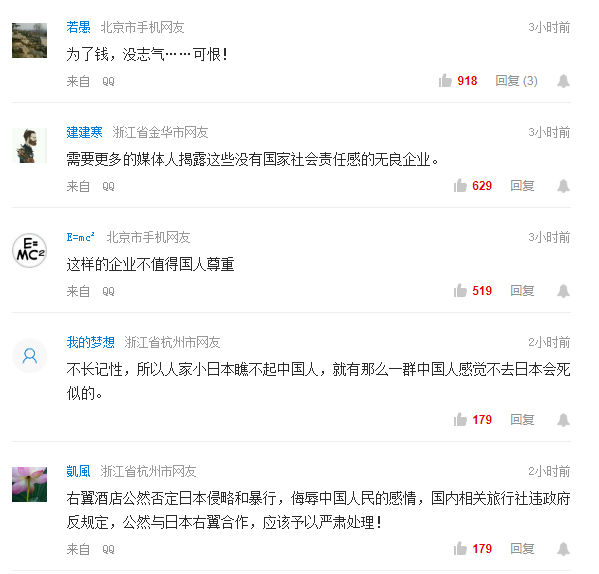 对此,共青团中央微博11月13日援引王瑞扬的文章称,事件过后10个月的今天,中国国内的订票网站已默默开始将APA酒店的预订服务加了回来。王瑞扬也无不失落地表示:“是的,人们真的忘记了。”在下方的评论区内,网友的留言显得群情激奋,纷纷对涉事企业的这一做法予以谴责。