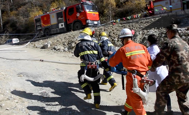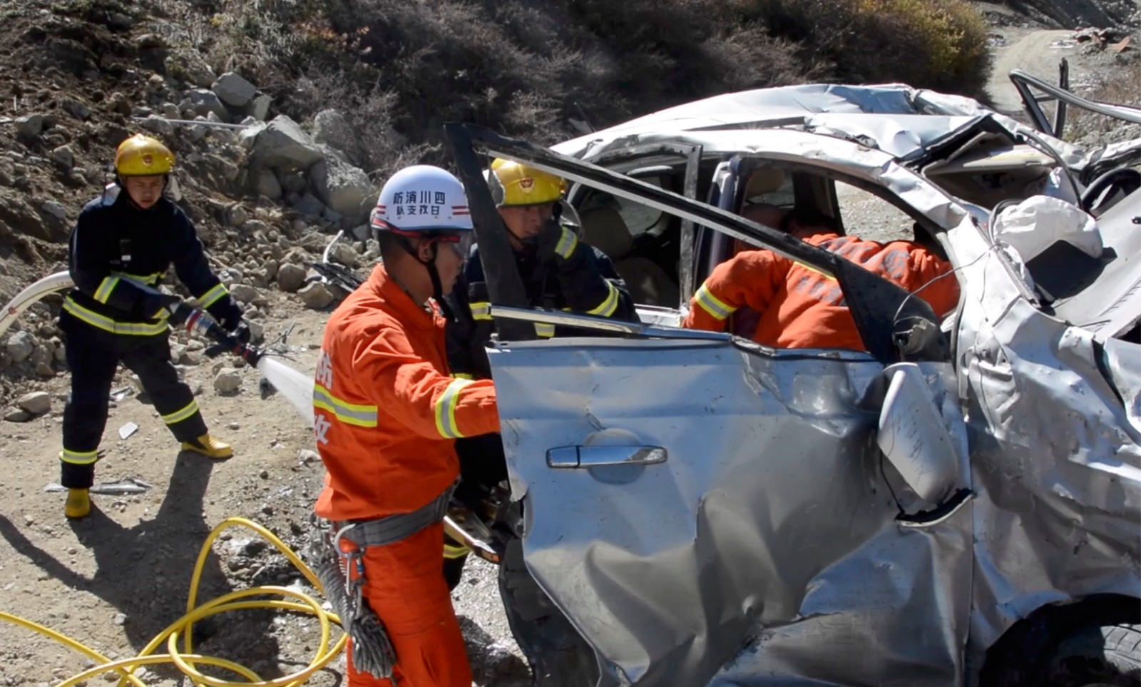 经过近二十分钟的紧张救援,被困人员被全部救出,现场消防官兵和120医护人员随即将伤者抬上救护车并送往甘孜州人民医院进行紧急抢救。