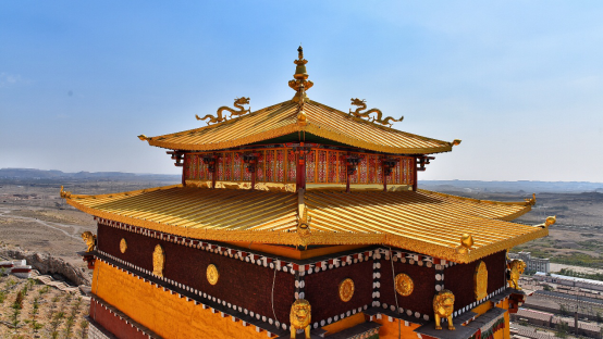 当阳光洒撒在位于半山腰僧庙的时候,僧庙显得格外肃穆庄严。红灰白相间的庙墙、滚动着阳光的金顶与图海山的峭壁交相辉映。山路陡峭,只能让人气喘吁吁地爬上山去。僧庙中的佛堂等建筑诠释着蒙藏佛教与医学的辉煌历史。