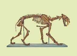 另一件重要展品是剑齿虎。剑齿虎的体型跟狮子差不多大,它拥有一对可怕的獠牙。上个冰期末,其中的一个亚种——刃齿虎走向灭绝。只有极少种类的剑齿虎曾有机会跟人类相遇,而刃齿虎正是其中之一。