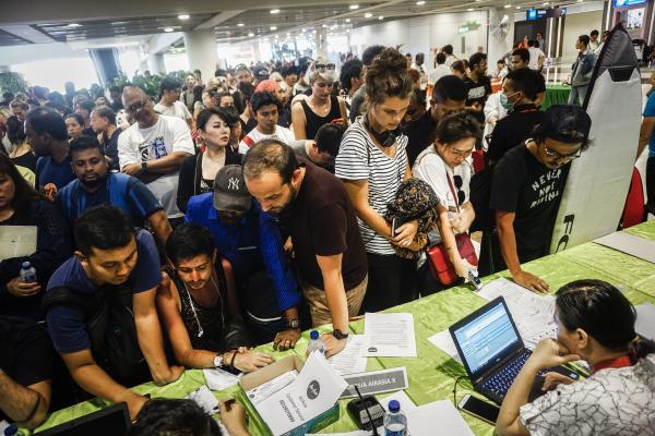 当地时间2017年11月27日,印尼巴厘岛,机场的旅客。 视觉中国 图