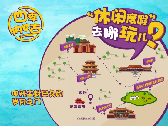 推荐线路:出发城市——通辽——库伦三大寺——哈萨尔圣地蒙古风情园——孝庄园——奈曼王府——奈曼经缘寺——返回