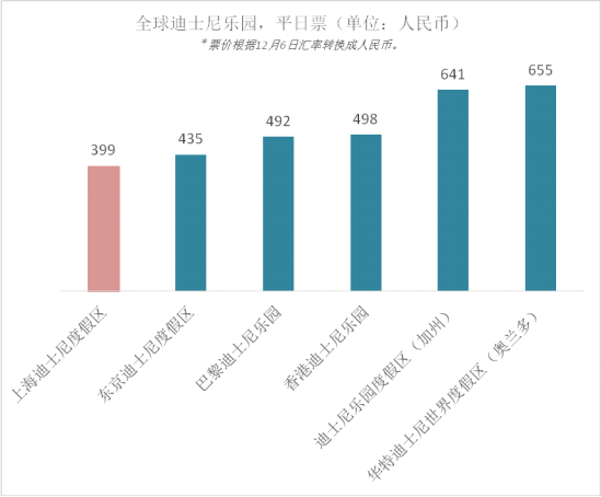 自2018年6月6日起,上海迪士尼度假区的上海迪士尼乐园将采用三级票价结构,分别为:平日、高峰日和假期高峰日。上海迪士尼乐园的平日门票价格为399元人民币。需求较高的高峰日(包括暑假、周末和大部分节假日)的门票价格为575元人民币。需求更高的两个假期高峰日(即春节和国庆节假日)的门票价格为665元人民币。