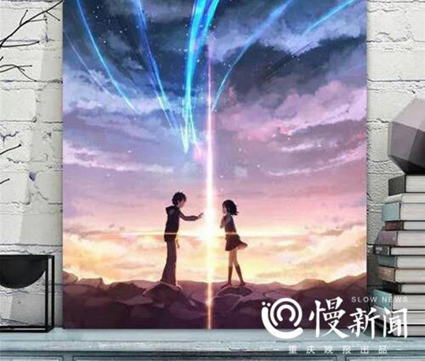 何永杰20日从网上购买的那幅新海诚动画电影《你的名字》封面主题的数字油画,23日已经快递到了重庆。