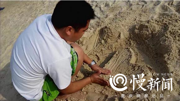 何永杰和爱人冯怡在三亚旅游时做的沙雕