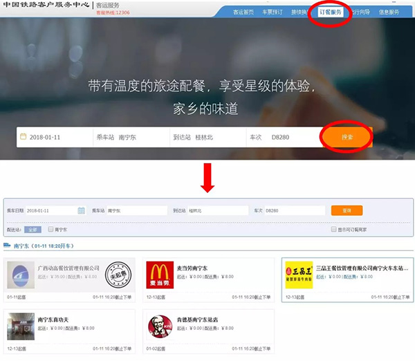网上下单成功后,商家后台接单并马上准备您点的餐食打包装箱,铁路站车服务人员会把餐食送到指定的车次和席位。