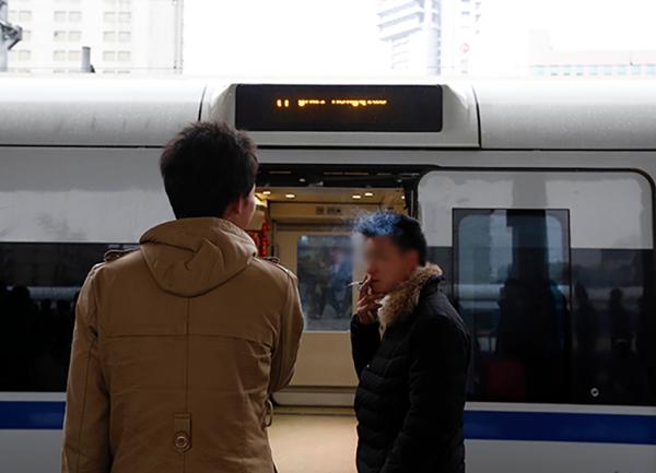 李辉告诉澎湃新闻,列车进站停靠的两三分钟,一些烟民经常会到站台上,过把烟瘾,车要开时,有的旅客想多吸两口,磨蹭着站在门边,快要关门时才闪进车厢,“这样很危险,高铁门没有感应,关门时虽然会滴滴叫,但只有那么五六秒钟。”