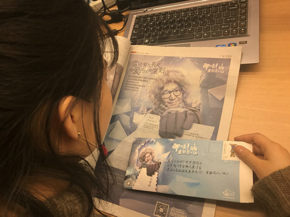 此次黑龙江省旅游委的整版报纸广告,正是以此为创意点。广告刊登于2018年1月12日的《新京报》文娱版,以“写给雪雕老人的一封信”为主题,版面上有留白的信纸和雪雕老人的收信地址。