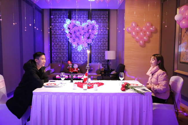 曾女士以为只是普通的圣诞晚宴,从进门开始,每遇到一个工作人员,就会给她递上一支玫瑰,直到沈先生的最后一朵,一共11朵,寓意一生一世。