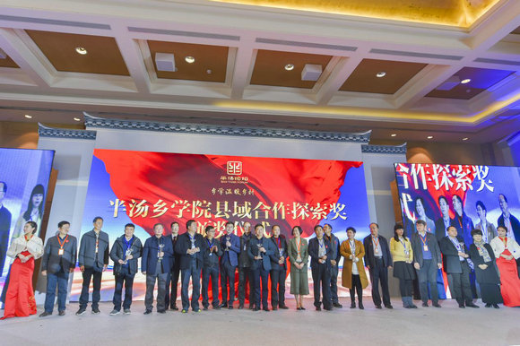 开幕式上半汤乡学院为山西省武乡县、湖北省十堰市郧阳区、河北省南皮县、江苏省新沂市、黑龙江省克东县、安徽省涡阳县、山东省威海市文登区、湖北省仙桃市排湖风景区、四川省会理县、山东省平邑县电商产业园等十个单位颁发了2017合作探索奖。