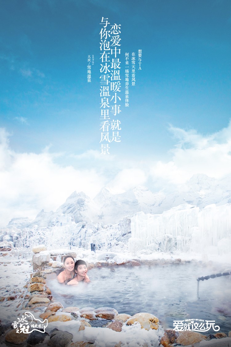 到大庆泡一次雪地温泉,那将是回忆中珍贵的温暖小事。在室外与泉水将近80℃的温差中,感受冰火两重天的刺激,像极了恋爱中的酸甜滋味,“恋爱中最温暖的小事,就是与你泡在冰雪温泉里看风景”。