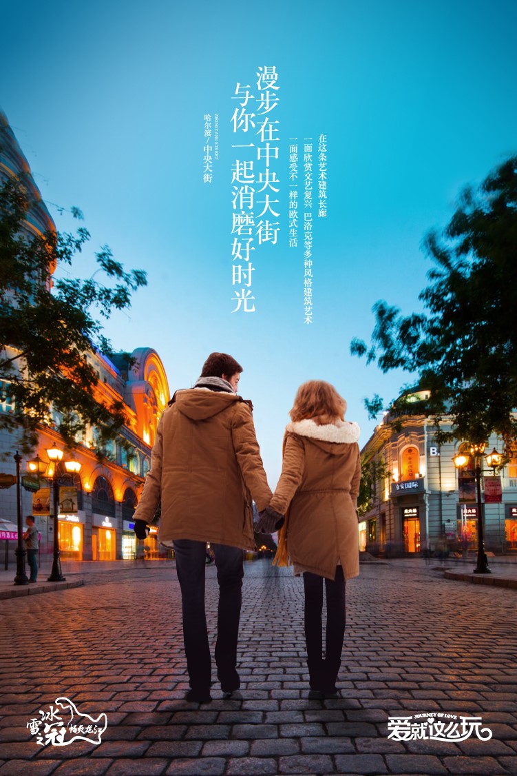 执子之手游龙江,与子偕老伴一生。从相识相恋到相濡以沫,“冰雪恋人”只差一套唯美的婚拍。走在百年中央大街,婚纱与雪花相映成画,巴洛克建筑与冰雕雪塑相得益彰。说句情话,“漫步在中央大街,与你一起消磨好时光”;按下快门,定格极富冰雪情韵的欧式贵族生活。