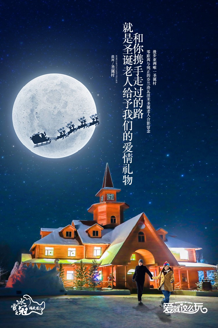 不必羡慕《侣行》中那对情侣在北极表白,“冰雪恋人”可以来到中国“北极”漠河,牵手漫步亚洲唯一的圣诞村,与纯正芬兰罗瓦涅米圣诞老人合影留念。写下“和你携手走过的路,就是圣诞老人给予我们的爱情礼物”,将三张记录恋爱的明信片在中国最北圣诞邮局寄出。