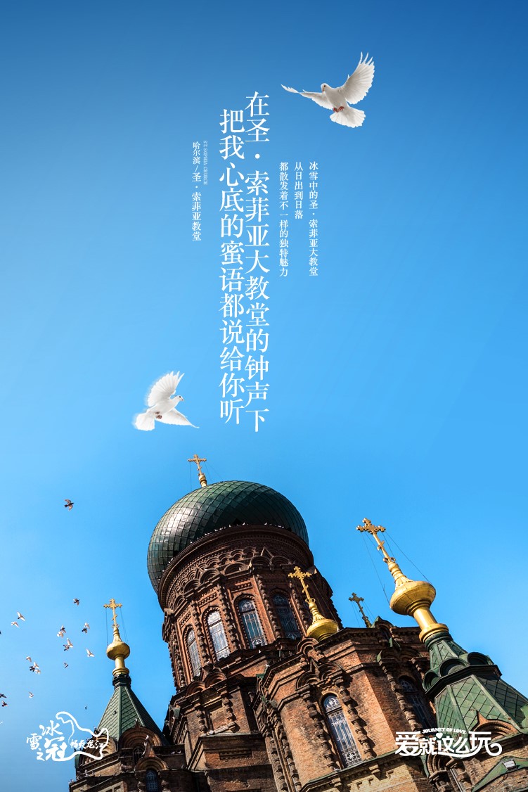 从日出到日落,冰雪中的圣·索菲亚大教堂都散发着不一样的魅力。白纱、白雪与白色和平鸽,是这座拜占庭风格建筑开出的神圣花朵。作为无数情侣的婚拍胜地,冬季落雪大片一定惊世骇俗,记得写下“在圣·索菲亚大教堂的钟声下,把我心底的蜜语都说给你听”。