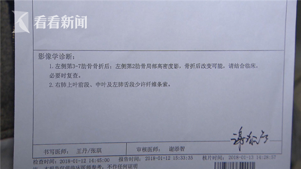 飞机落地之后,地面人员把刘阿姨送出机场,老两口立即去了医院,检查下来,刘阿姨摔断了5根肋骨。