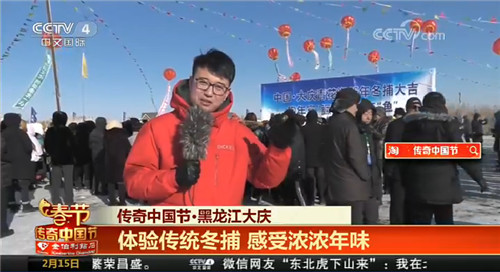 “年年有余年年余,岁岁平安岁岁安。”主持人站在黑龙江大庆青花湖的冰封湖面上,为电视机前的观众送上祝福春联。央视中文国际频道于大年三十儿播出了《2018传奇中国节·春节》大型直播特别报道,黑龙江冬捕活动独具特色,打出一网网丰收的“冰雪盛事”,熬出一碗碗浓郁的“冰雪年味”,端上全球华人的除夕餐桌。