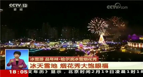 央视新闻频道播出哈尔滨万达冰灯大世界冰雪烟花秀