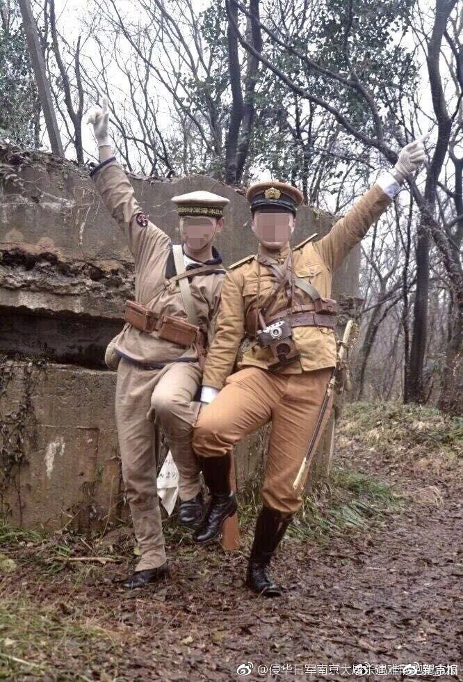 港媒称,去年上海抗日遗址四行仓库附近,有多人身穿日军军服拍照遭到警方拘留,近日又有至少两名青年“不知亡国恨”,竟然在南京保卫战遗址附近,身穿日军军装、手持枪械和日本国旗照相留念,还摆出夸张搞笑造型,被民众狂骂“卖国贼”。据悉已经有热血网友向南京警方报案。
