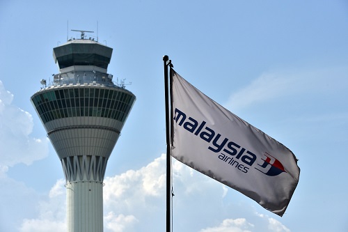 3月8日,在马来西亚雪邦吉隆坡国际机场,马航旗帜在控制塔外飘扬。新华社发