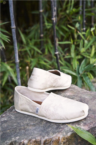 此外,近期TOMS携手亚洲爱心大使周迅,推出了限量版的TOMS×周迅爱心联名款系列懒人鞋。该系列由周迅亲自参与设计,摘取大自然之中仙鹤、藤蔓树枝等元素为灵感,采用刺绣、印花等工艺方式,呈现在缎面、绒面、帆布质感的鞋面之上。