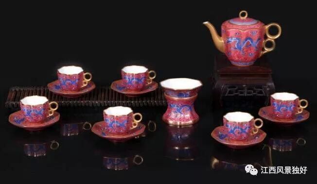 豐瑶胭脂红扒花描金龙凤天合茶器