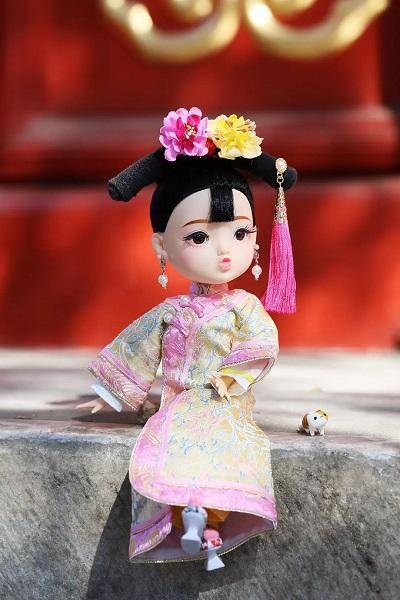 这款“俏格格娃娃”上架时售价为599元,创意元素来源于中国古代的格格,首批娃娃选择了清代服饰,分蓝色和粉色两款。每款包含了1个人偶、2个步摇、2套绢花、1个旗头、1对耳钉、2套衬衣(外衣)、1套中衣、1件肚兜(内衣)、1双袜子、1双花盆底鞋、1个桌面支架。娃娃的四肢与头部都可以活动,身高27厘米。
