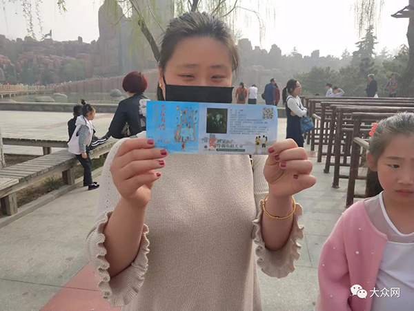 来自济南的游客赵女士告诉记者:“这些孩子太可怜了,我已经把他们的信息转发到我的朋友圈了,希望能帮到他们。”赵女士的爱人冯先生说道,“通过这种形式来帮助失联家庭是一个很好的创意,门票的流动性很大,这对信息的传播很有作用”。
