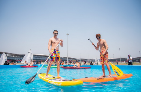 而围绕亲水主题系列展开的赏金赛堪称是整场水上嘉年华的重头戏,主办方诚意打造了室内外联动的500平方米超大水池,趣味盎然的赏金大赛就在此上演,包括水上浮毯竞速跑 · 赏金赛和潜水拼图赏金赛等环节,让观众360°玩转水上运动,参与水上体验活动的观众还可获得水手大礼包一份。此外还有皮划艇、OP帆船、桨板等丰富的现场互动体验活动,由专业船艇供应商提供一流设备,专业俱乐部提供一流指导教学。